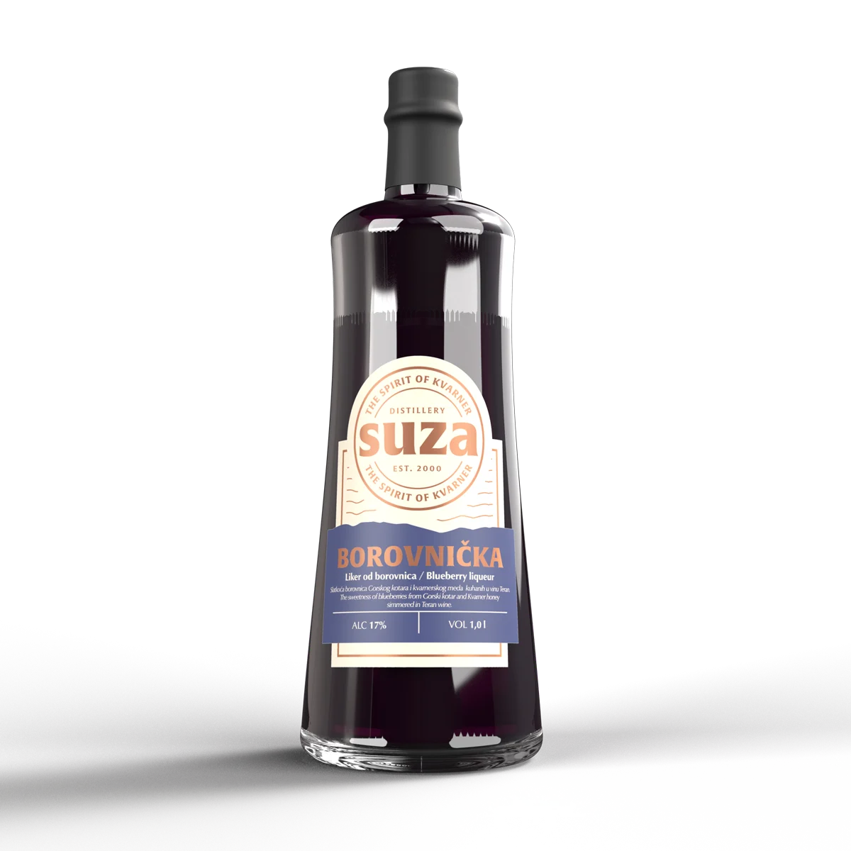 Borovnička Suza – The Spirit of Kvarner is a liqueur made by cooking blueberries from Gorski Kotar in Istrian Teran wine, enriched with subtle notes of rum and Kvarner’s local honey. It has a delicate, sweet, and slightly tart flavor, with a rich texture created by whole and ground blueberries.